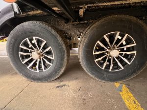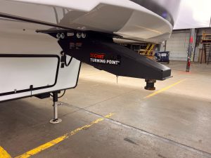 Other build quality features include a PVC roof which carries a lifetime guarantee and something I really liked: a Dexter EZ Flex suspension system. This system helps minimize shocks transmitted into the trailer itself, which can reduce wear over the long haul. It also rides on Hankook Vantra trailer tires — not the usual off-brand tire. Further, there’s a tire pressure monitoring system included which I feel is an important safety detail. There’s also a four-point auto level built into this trailer and another rarity — a rear bumper.