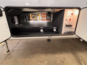Another smart feature is that the gate valves for the holding tanks are enclosed in the underbelly. While some RVs have heated underbellies, the gate valves can freeze in colder weather. But these on the Crusader 265MLE are enclosed in the heated space. That’s smart. I would worry much less about camping in this trailer during the shoulder seasons due to the freeze protection built into it.