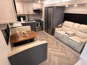 While I always encourage you to shop for an RV from the bottom up, paying attention to how the rig is built (see the intro), the truth is that many people start with the inside first. Those who do so are going to like what they see with the Crusader 265MLE. Prime Time RV hired an interior designer to give their interiors a new look for 2024. And this one definitely reflects the experience of someone with an eye for design. The evidence is everywhere. (Just look at these photos.)