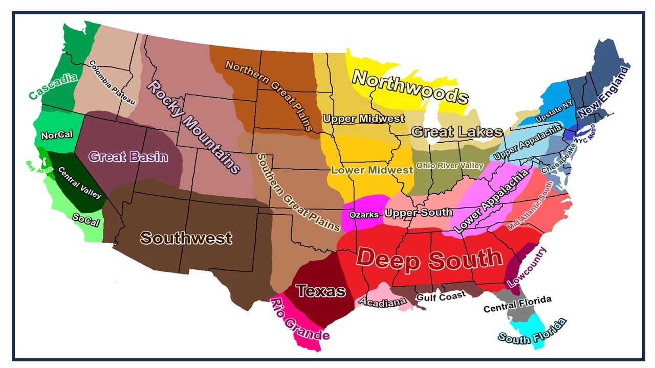 Below are a couple of maps that will help you fine tune some deep exploration as they divide the U.S. and Canada into “cultural” areas — as well as six of our favorite areas that we’ve explored.