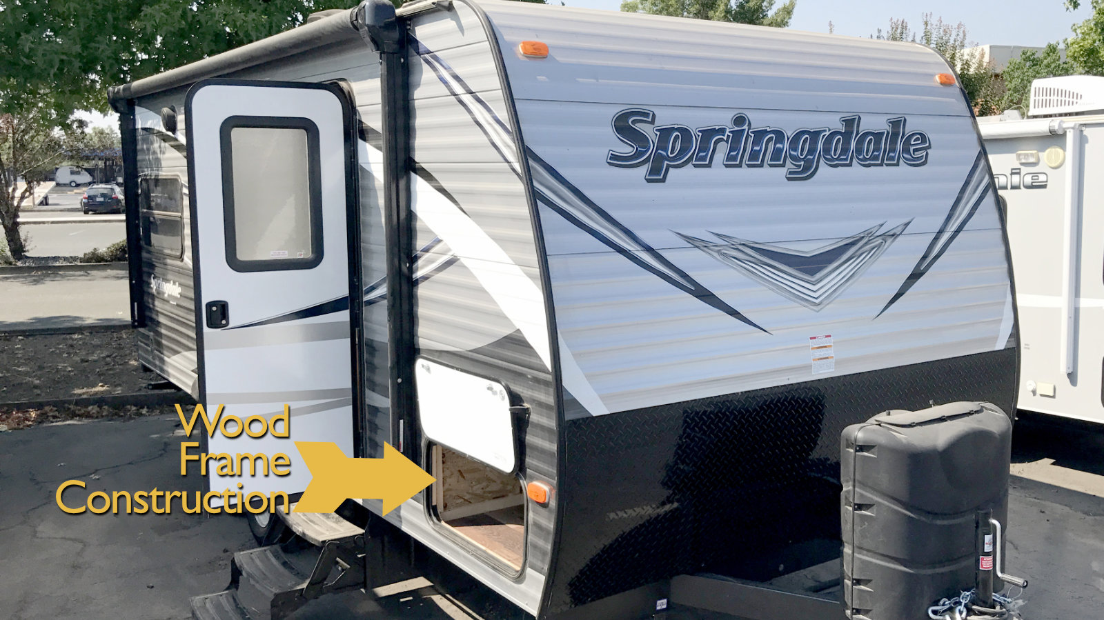 There are essentially three main ways RV companies build RV walls. Some use a wood frame with an aluminum skin. Others use a number of layers in a lamination process. And still others use fiberglass molds for the entire wall structure. There are some pretty significant variations among these broader categories. (Of course, there’s also the aluminum build that Airstream uses.)