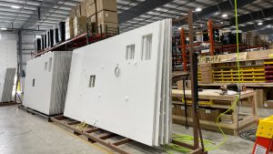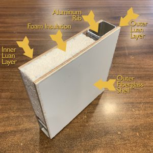 For laminated walls, typically the layers are fiberglass. Nexta substrate (this is where Azdel would come in). Then either an aluminum rib or foam insulation. And then another substrate layer and then the interior wall board. There are some cases where the interior wall is the entire inner layer.