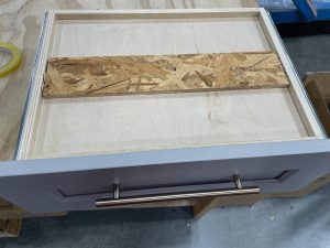 But there is more than meets the eye. In some cases, RV companies will use very high quality hardwood cabinet doors and drawer faces, but then use sticker-wrapped wood composite stiles and bases for their cabinets.