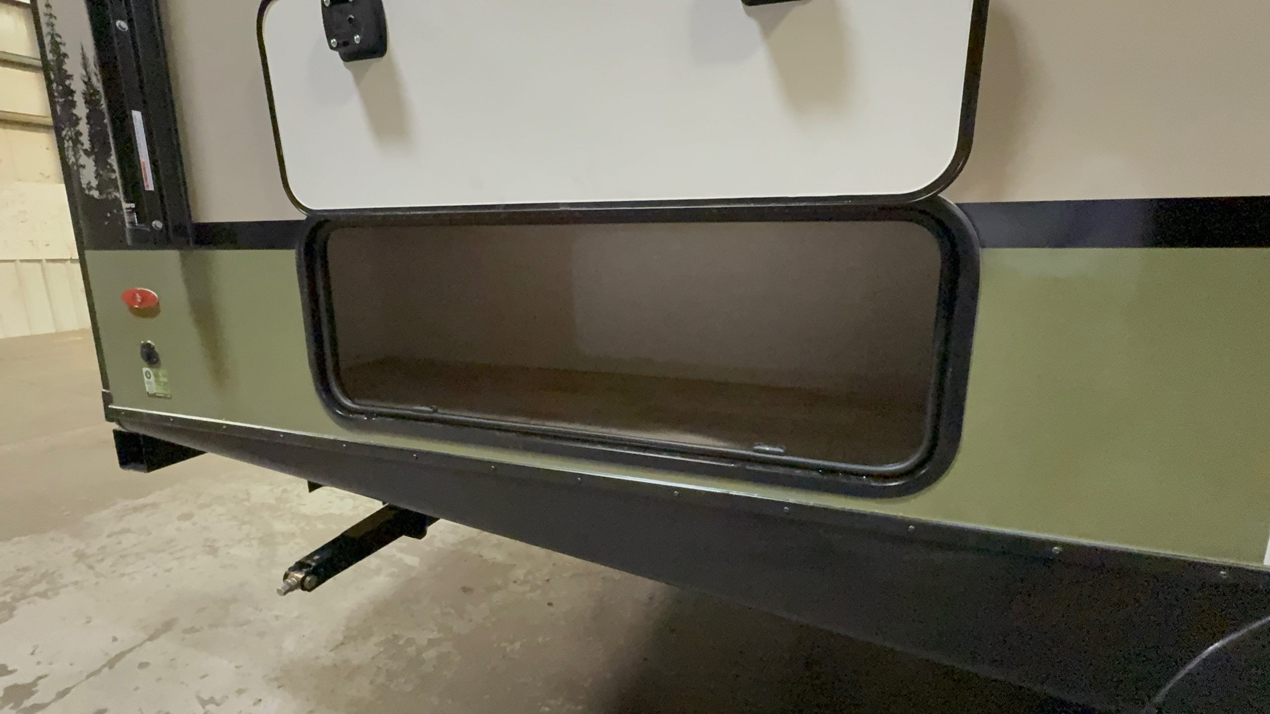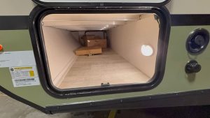 Outside the rig is an enormous pass-through storage compartment. If you are traveling with some large bikes, surfboards, or other awkwardly shaped toys, this rig has your hobbies covered. I appreciate its ease of access compared to many pass through units. There is another small outdoor storage compartment available next to the entertainment center.