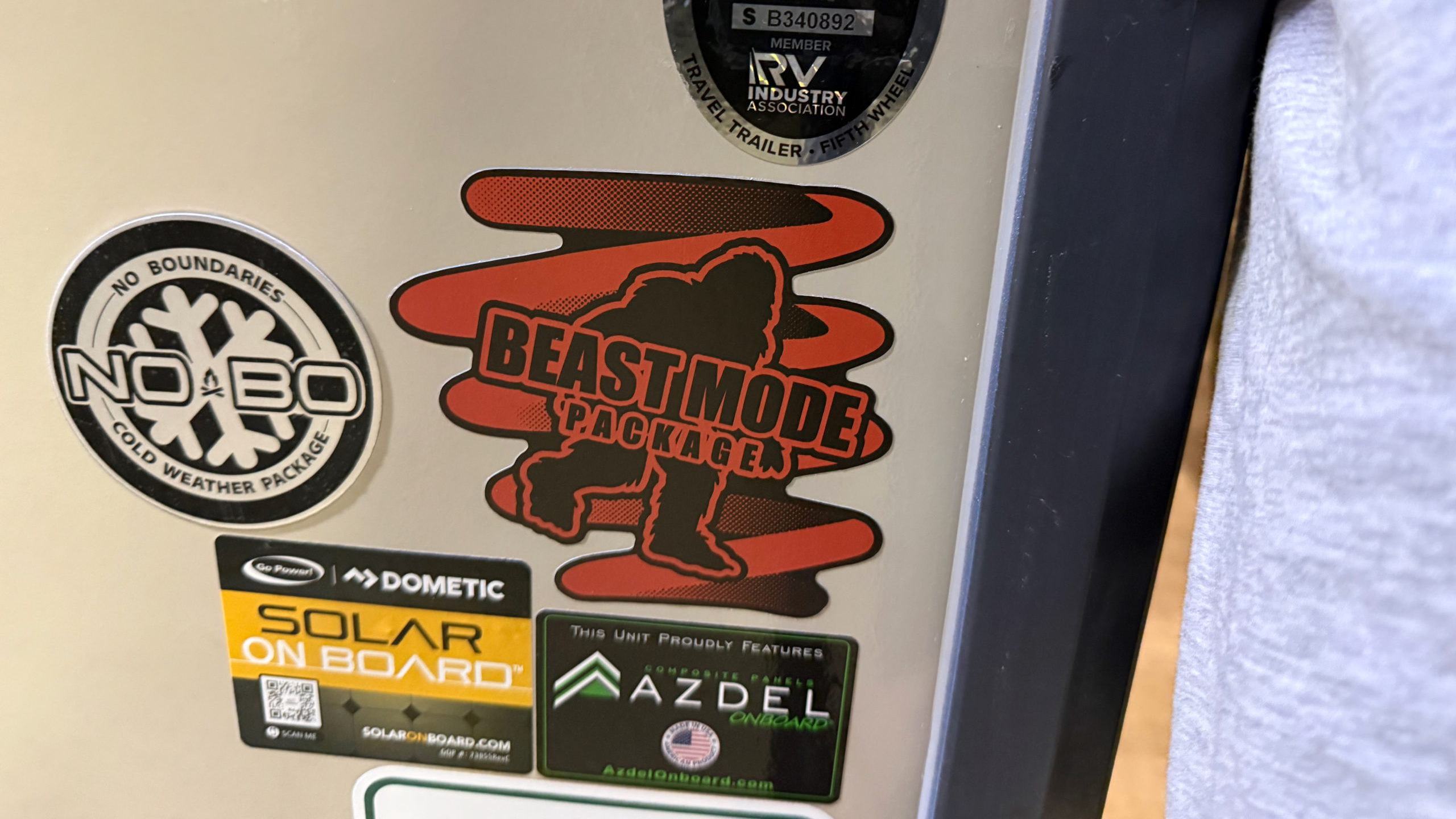 This unit comes with Azdel Onboard panels. This is an advanced composite material that replaces traditional wood products like plywood. A patented blend of polypropylene and fiberglass results in a lightweight, robust wall panel. It is water- and moisture-resistant which is great in extreme weather conditions. This, in addition to the vacuum-bonded laminate construction, provides enhanced insulation and temperature regulation.