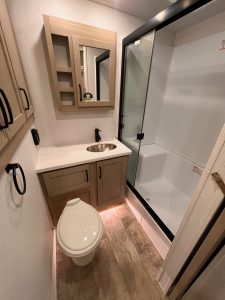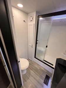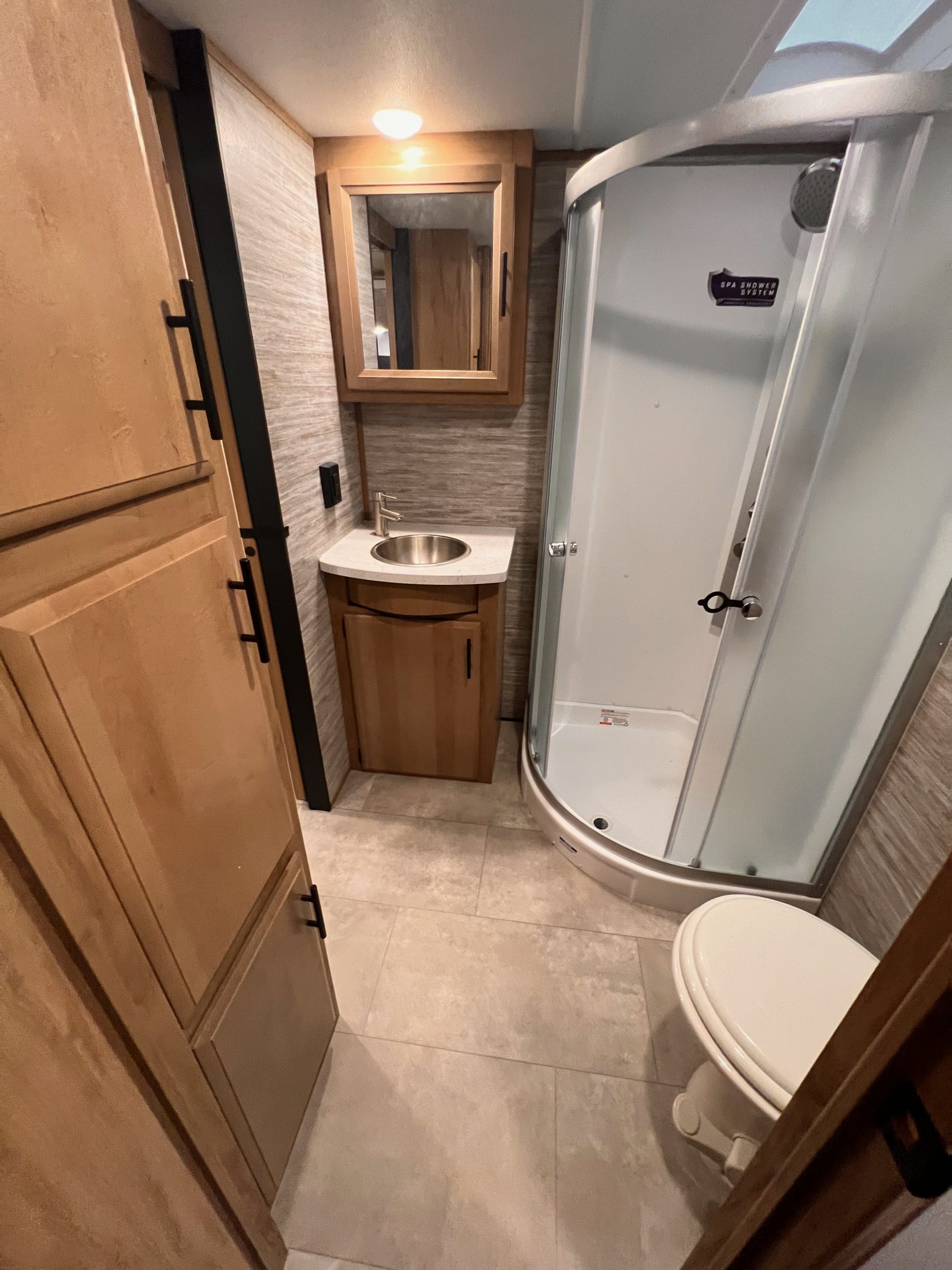 Another surprise in this rig is the second bathroom off the main living area and the included washer and dryer. This definitely has a premium feel to it with a lot of clever and useful features.