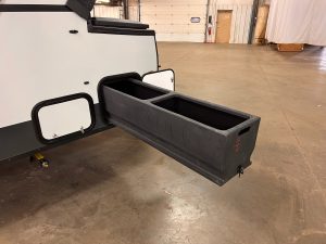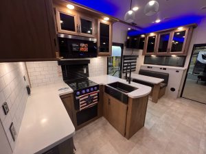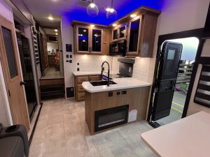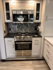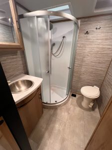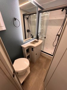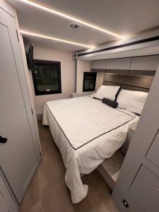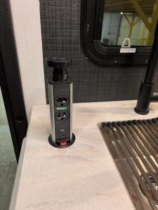 The electrical, too, is impressive. The standard system in this rig includes 600 watts of solar and two Lithionics lithium batteries rated at 130 amp-hours each. Further there’s a 1,000-watt inverter standard. This is all backed-up by a 3.6Kwh propane-fueled generator.