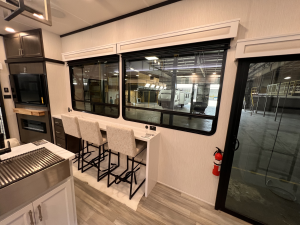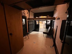 Towing is another reason people like these motorhomes and this is equipped to bring the goods along. I’ve seen lots of RVs like this at equestrian events as well as auto racing. No worries, bring the cars or the horses although, as with any RV, know your numbers so you’re towing safely.