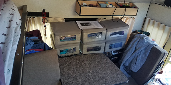 She paid $8,000 for it and in 18 months she put almost $20,000 into it. And it still had problems. The last straw was when her black tank fell off in Indiana. After that she started shopping through RV Trader and found her dream rig in Albuquerque. It was a 2005 Itasca Spirit Class C with a roomy floorplan on a reliable chassis.