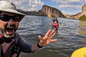 “Where’re ya putting in those kayaks?” is a common question we get from curious bystanders. (We hear it wherever we go, whether that is near some body of water, or, a little more earnestly, when we’re parked in the middle of a desert.) As full-time RVers, having our kayaks with us at all times means that we can paddle away from the shore whenever and wherever the opportunity arises. Part of the beauty of kayaking is portability, which is why kayaks pair perfectly with RVs.