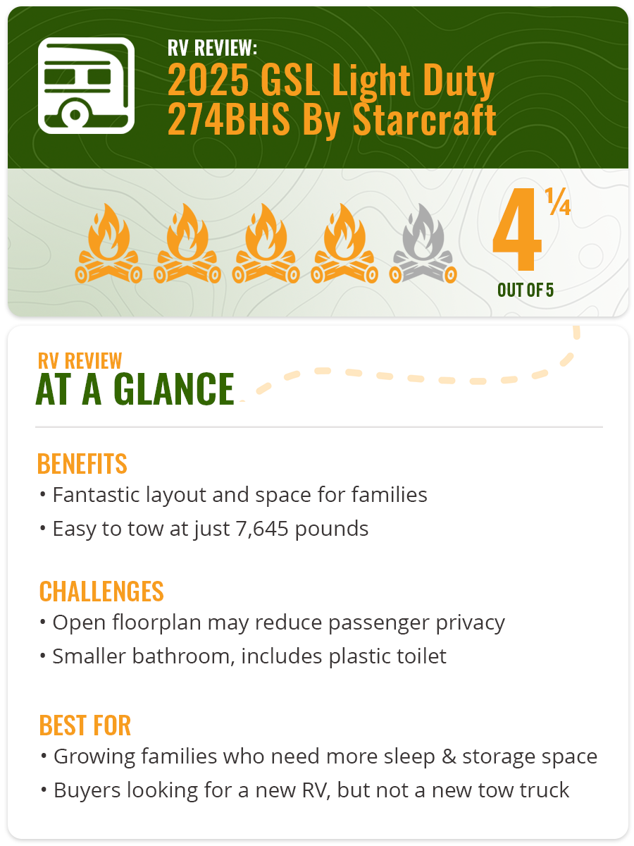 - Entry-level RV for small families for enjoying weekend camping adventures