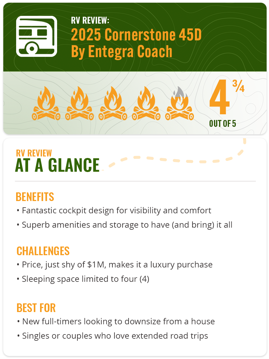 The RV Trader team then got to work providing you with an honest and unbiased evaluations. And that’s where I come in. I’m Lynne Fedorick, RV expert and enthusiast. I provide an honest look at RVs from an RV industry insider perspective. That way, you can learn the good, the bad, and the intriguing about any RVs I review. I inspect each RV with the buyer’s perspective at the forefront. And I always evaluate those six key areas that buyers have told us that they have in mind.