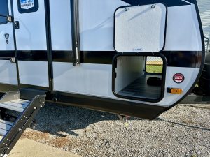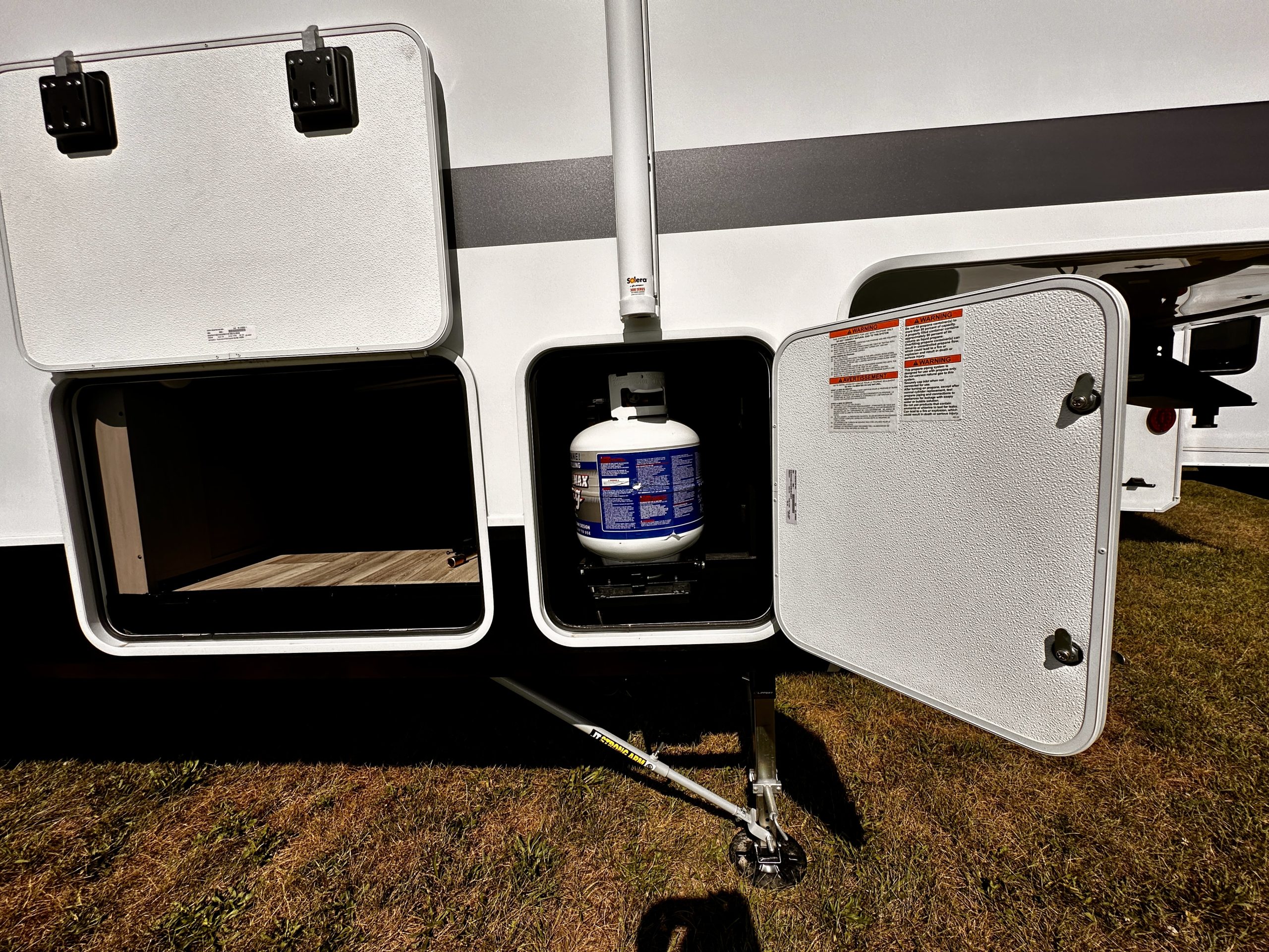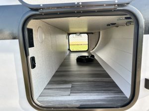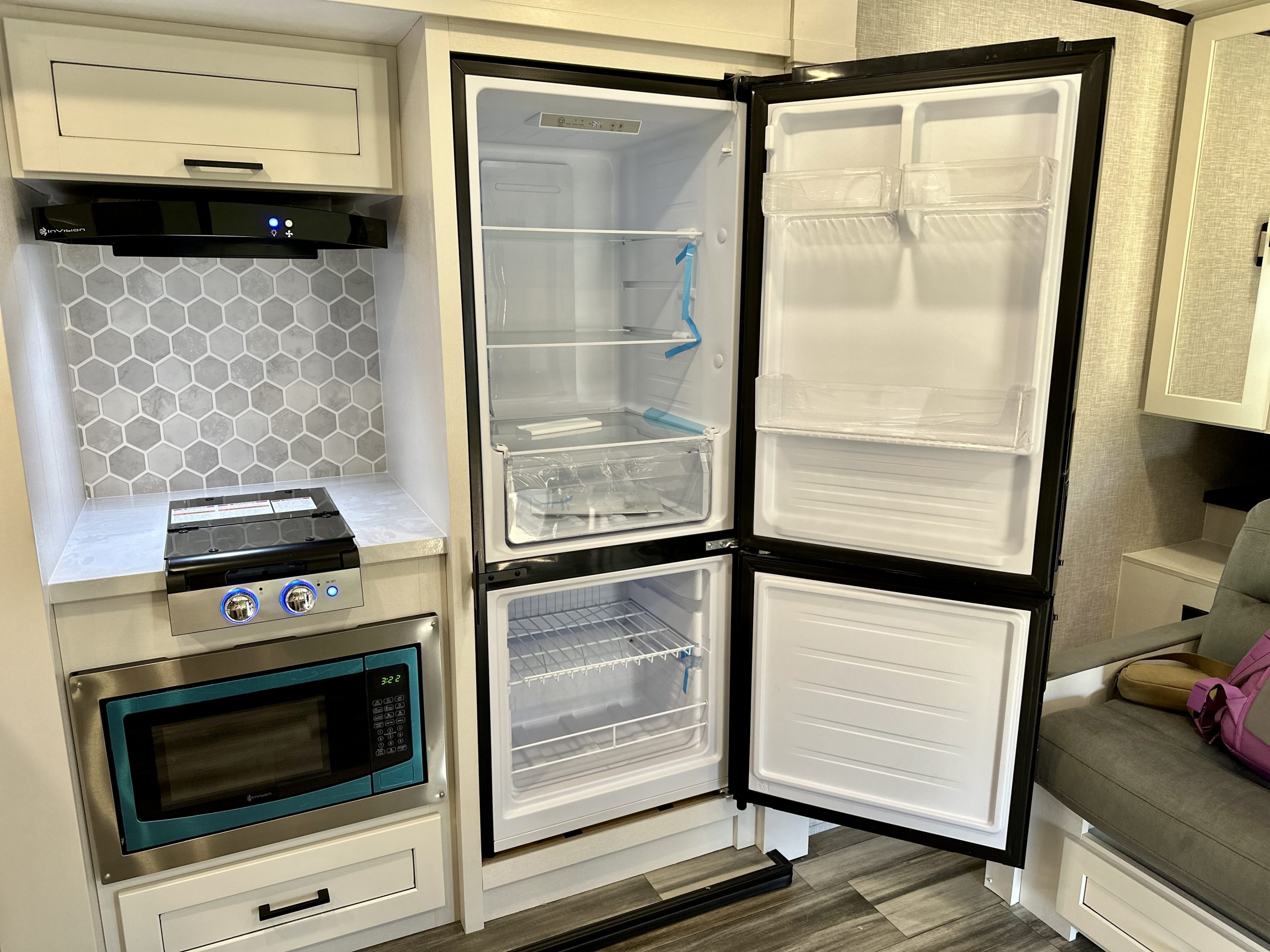 The Jay Feather Air is definitely a four-season capable RV. Double-insulated basement cabinet doors, heated basement, tanks and valves and enclosed underbelly make it a fun basecamp for ice fishing, skiing, or winter hiking.