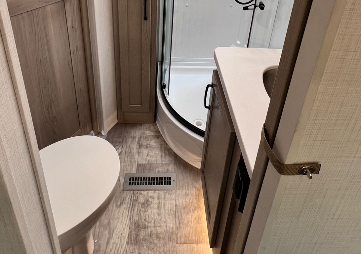 In a trailer this size, a few things took me by surprise. The first of those was the dry bath. Small trailers typically have a wet bath, where the toilet is essentially in the shower. For those who want to maximize space and time, this might not be an issue. But some RVers don’t like the idea of a wet bath.
